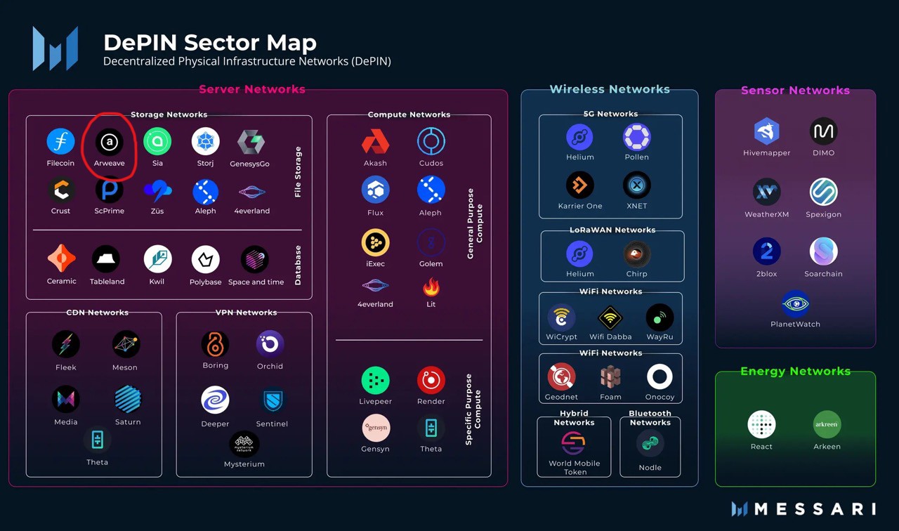 Arweave is considered one of the leading DePIN data storage networks, as can be seen in this recent chart from Messari:
