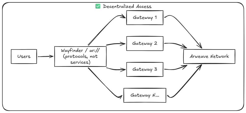 Arweave.net is the most widely recognized gateway in the ecosystem and will likely remain important. But even the most reliable gateway is still just one access point.