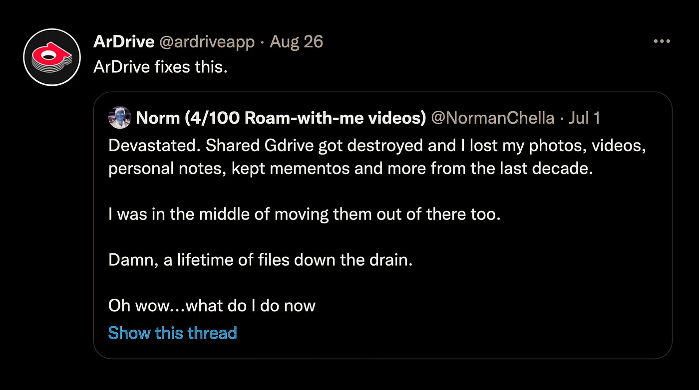 Another example of data fragility (or, our lack of knowledge about how it is actually being stored) can be seen clearly in NFT storage.