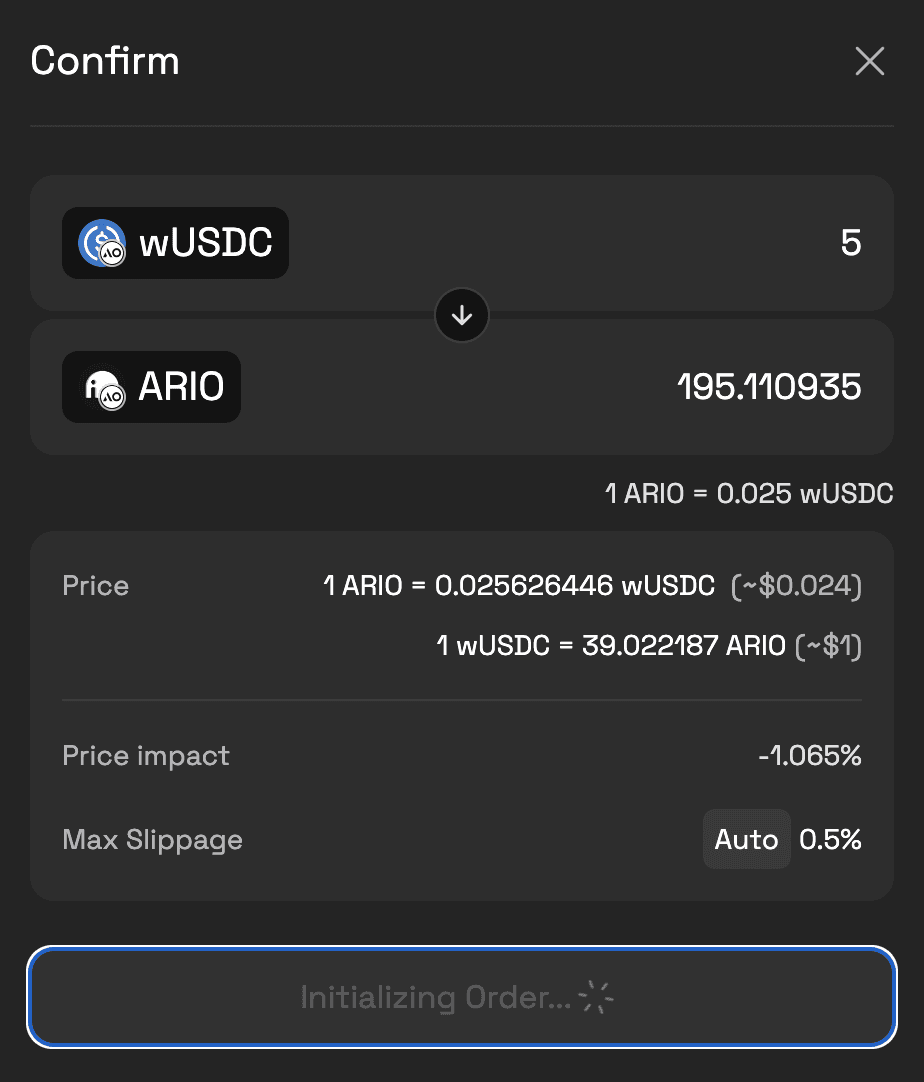 Step 4: Swap wUSDC for $ARIO on Permaswap