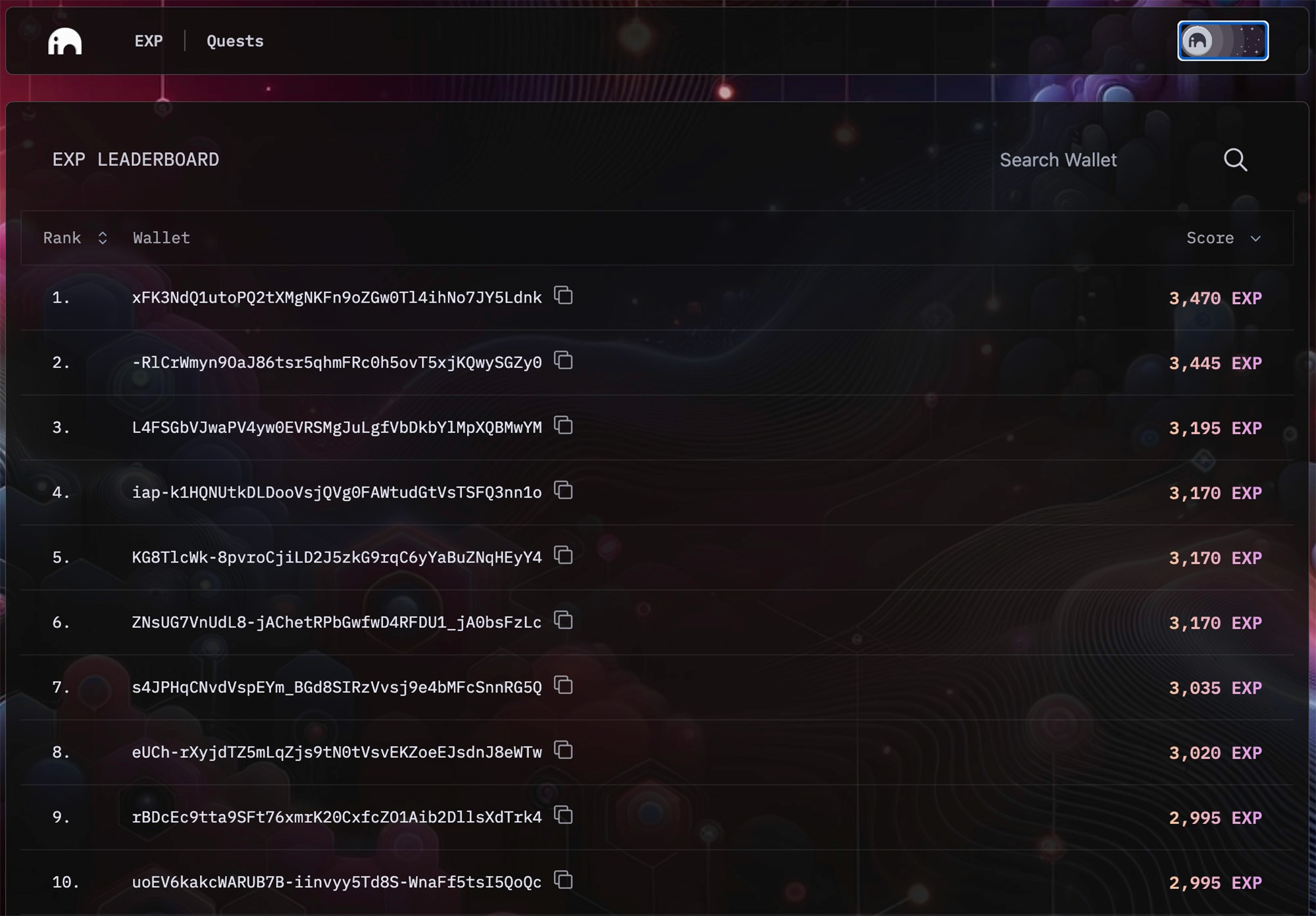 The best way to view your rank and all performed protocol activity is on our EXP leaderboard!