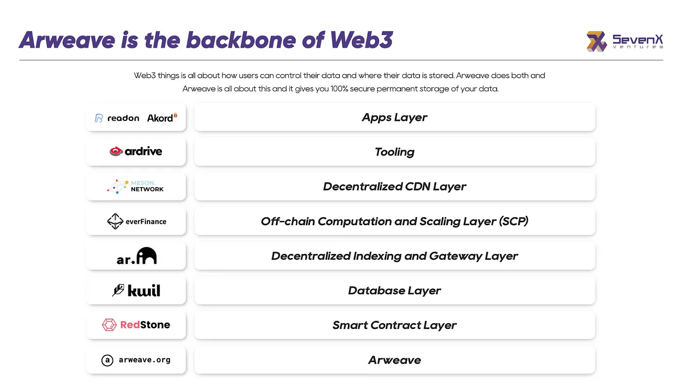 When you take an overview of the ecosystem you realize that Arweave is more than storage, it is a full stack of infrastructure and applications.