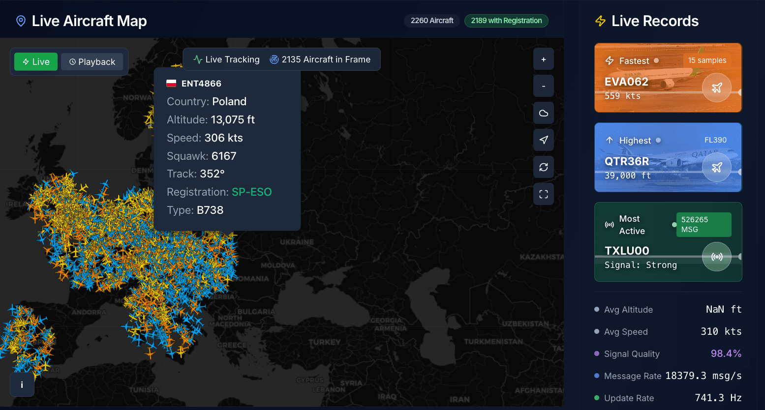 🌐 View live data on DeRadar - Decentralized Aircraft Tracking